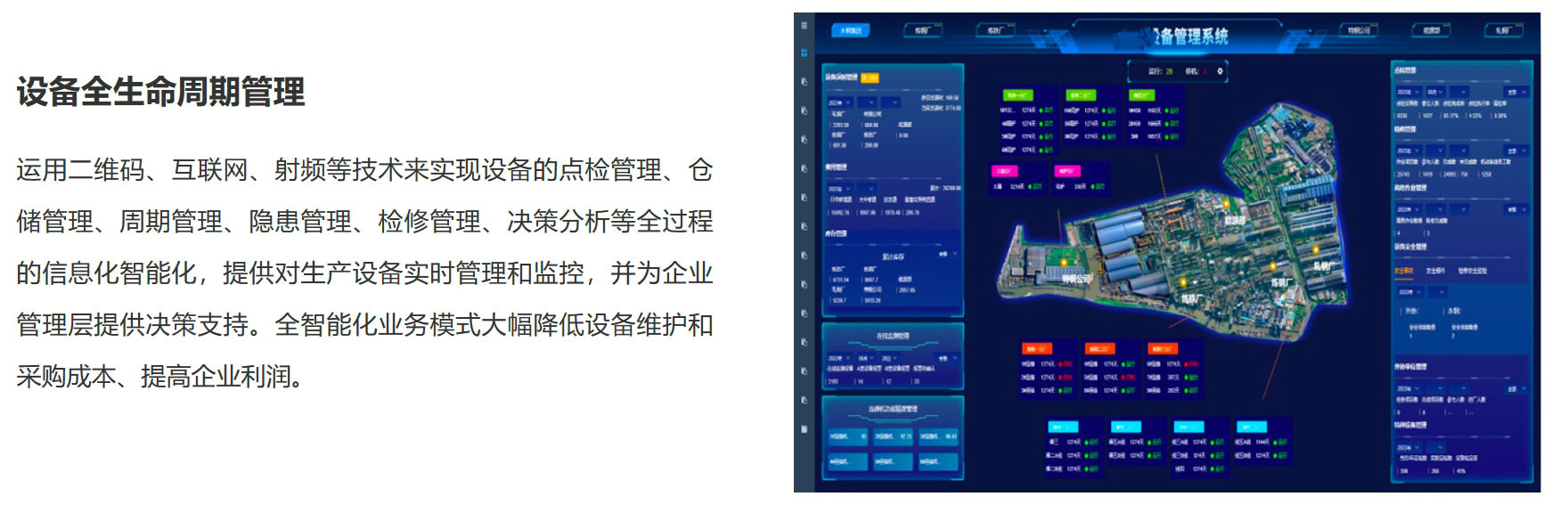 2、高爐車間設備資產(chǎn)全生命周期管理(設備臺賬,備品備件,點巡檢,預測性維護);