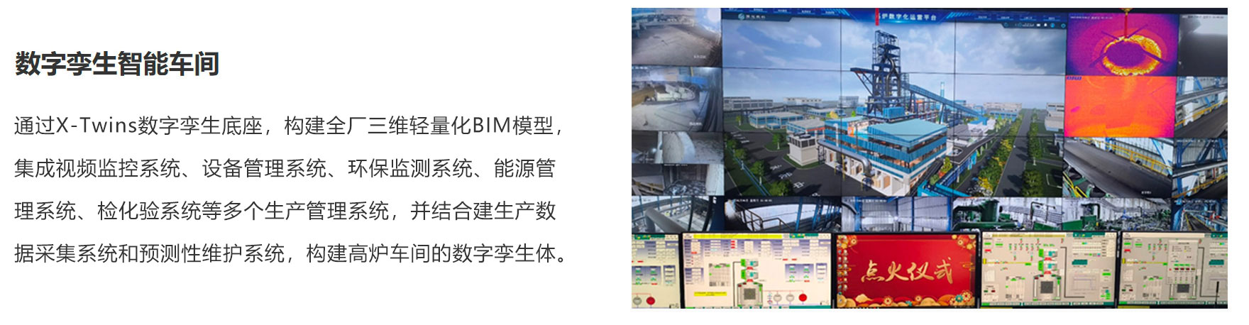 某鋼鐵集團高爐數(shù)字孿生車間,通過X-Twins數(shù)字孿生底座,構建全廠三維輕量化BIM模型,并通過集成監(jiān)控系統(tǒng),設備管理系統(tǒng),環(huán)保監(jiān)測系統(tǒng),能源管理系統(tǒng),檢化驗系統(tǒng),并集成新建生產(chǎn)數(shù)據(jù)采集系統(tǒng)和預測性系統(tǒng)等多個生產(chǎn)管理系統(tǒng)構建高爐車間的數(shù)字孿生體。通過該數(shù)字孿生體為高爐生產(chǎn)帶來如下價值: